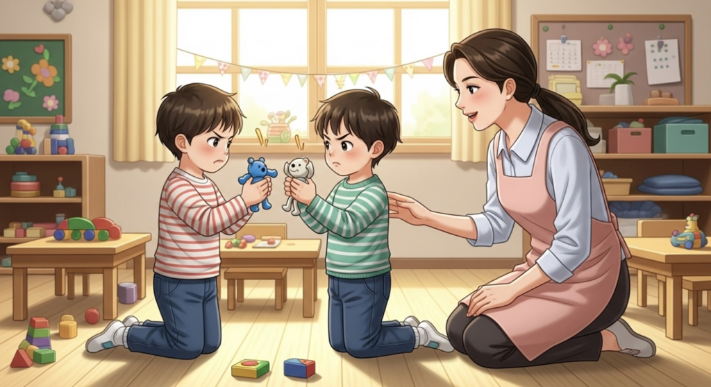 아이는 스스로 합의점을 찾으며 해결 능력을 키웠습니다.