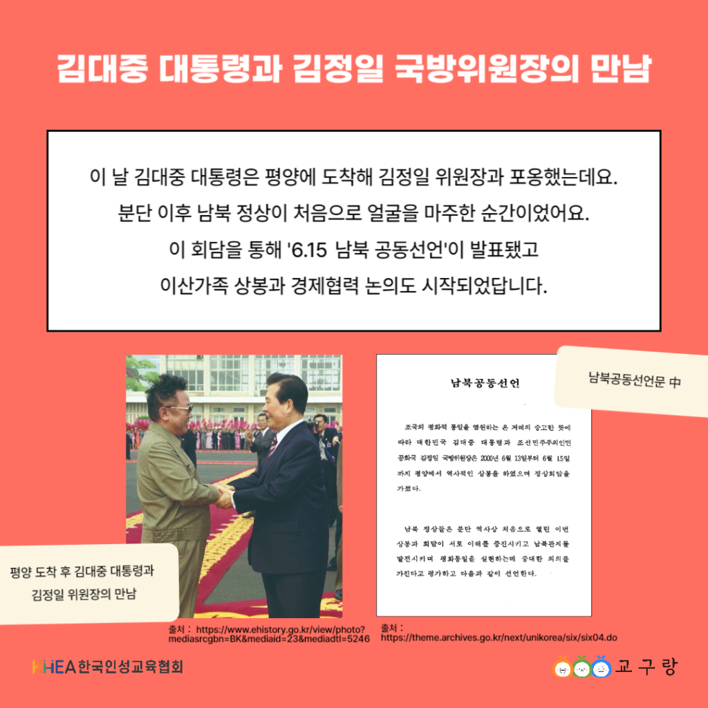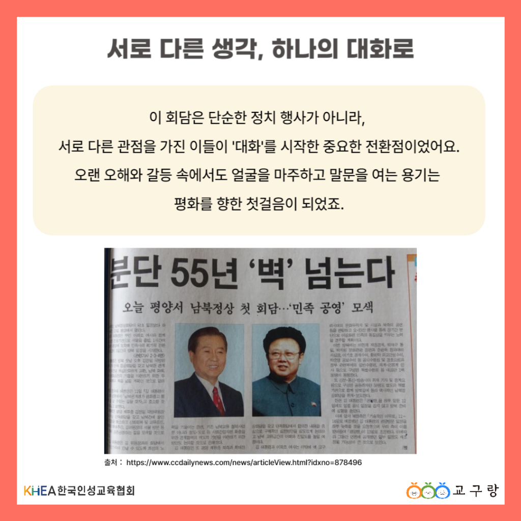 오늘 인성 칼럼은 2000년 6월 13일 남북 정상회담에 관한 이야기입니다.🌱