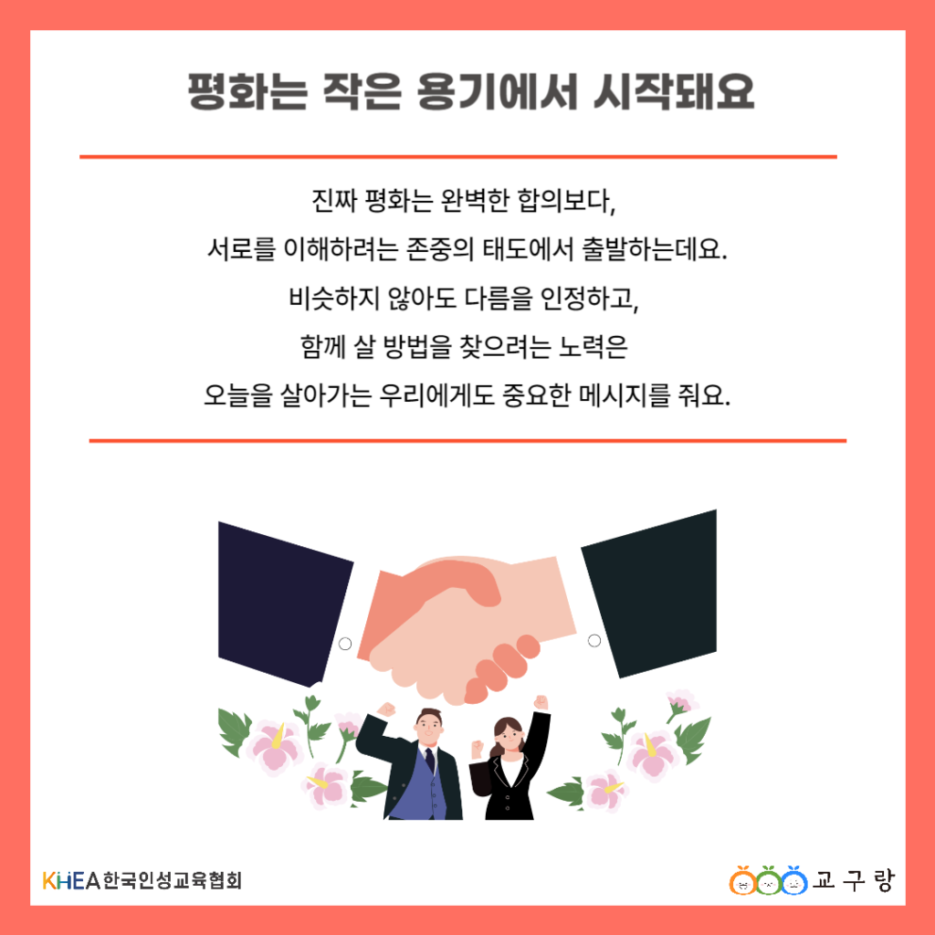 진정한 평화는 다름을 존중하며 대화를 시작하는 작은 용기에서 시작됩니다!😊🙌