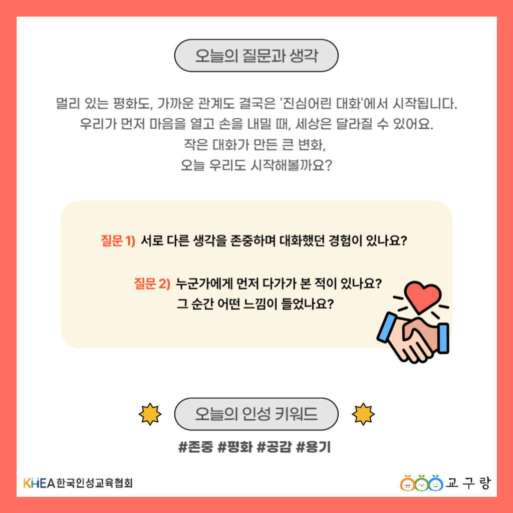 오늘의 인성 이야기 – 손을 맞잡은 그날, 평화가 시작됐어요!