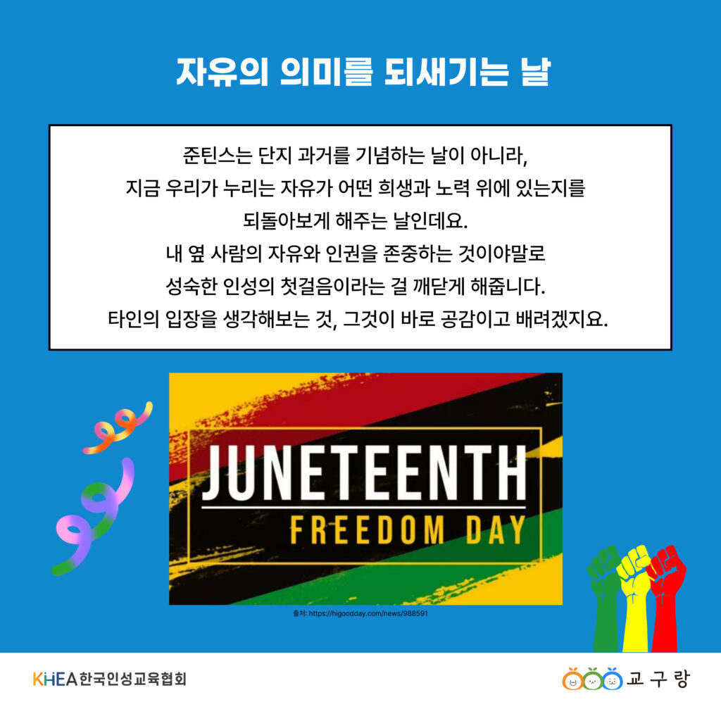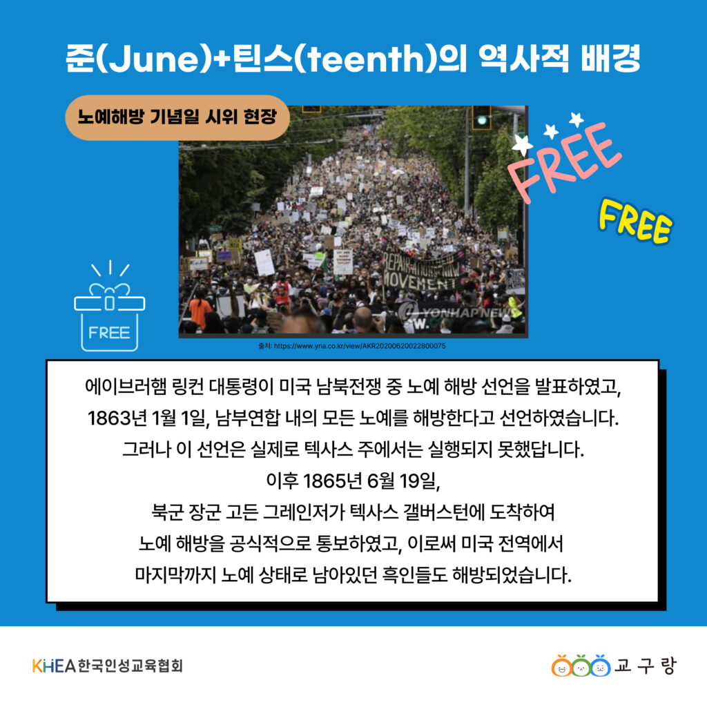 안녕하세요~ 혹시 ‘준틴스(Juneteenth)’에 대해 알고 계신가요?